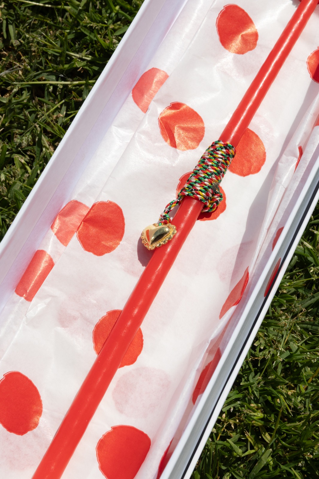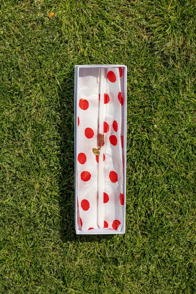 Κομψή λαμπάδα σε κόκκινο και λευκό χρώμα με φυλαχτό all we see is the sea