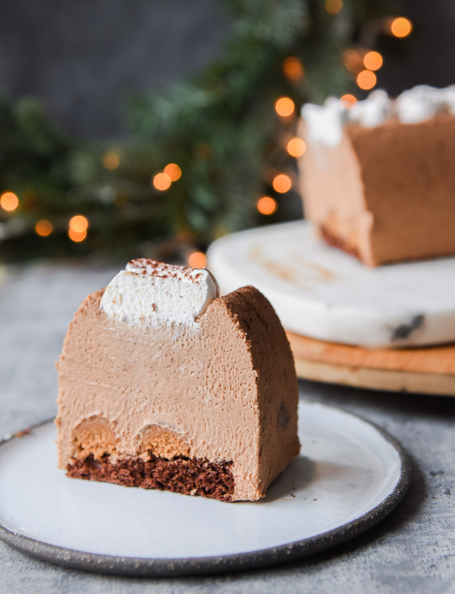 Χριστουγεννιάτικος Κορμός από σοκολάτα γάλακτος και απολαυστική ρευστή καραμέλα. (5-6 Ατόμων).
