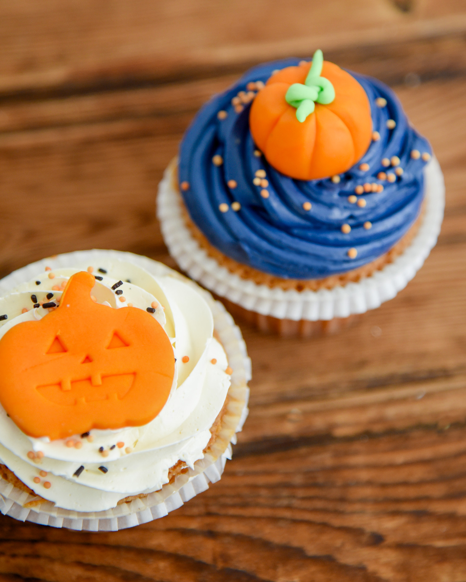 2 Ατομικά cupcakes βανίλιας ή σοκολάτας με επικάλυψη βουτυρόκρεμα και διακόσμηση Halloween