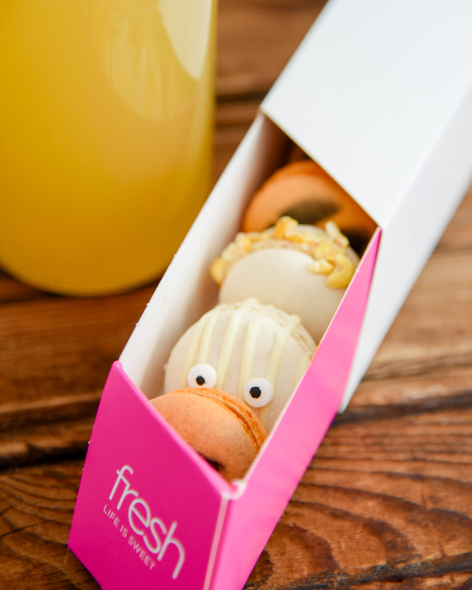 10 τεμάχια Halloween Macarons σε διάφορες γεύσεις. Γαλλικό χειροποίητο γλυκό από μαρέγκα αμυγδάλου, σε 3 απολαυστικές γεύσεις Pop Corn – Μανταρίνι – Βανίλια και ντεκόρ με διακόσμηση Halloween