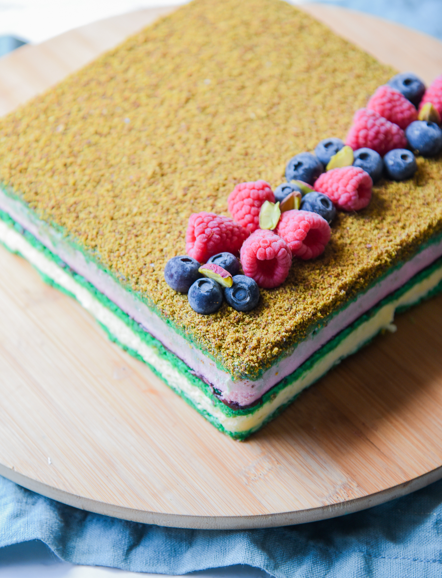 Τούρτα semifreddo με μαρέγκα, τριμμένο φιστίκι, semifreddo lime, semifreddo φράουλα, ζελε κόκκινων φρούτων και επικάλυψη από φιστίκι Αιγίνης (5-6 ατόμων).