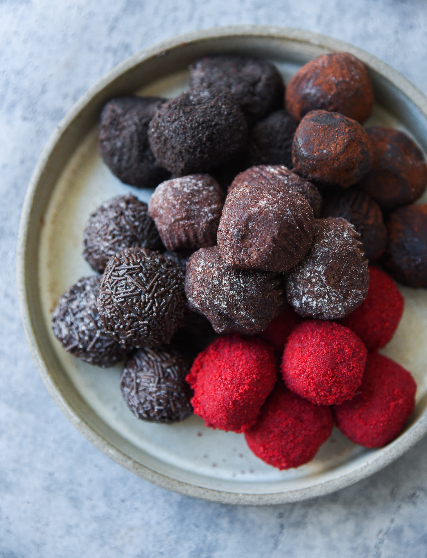*Οι γεύσεις στα τρουφάκια παρέχονται κατόπιν διαθεσιμότητας. 20 τεμάχια από Mix τρουφάκια Bitter (με σοκολάτα bitter, ρούμι και ξηρούς καρπούς), από τρουφάκια Oreo (λευκή σοκολάτα και μπισκότο Oreo), από τρουφάκια Red Velvet (αμερικάνικου τύπου με χαρακτηριστική γεύση βανίλιας και ξινόγαλου με κρέμα mascarpone) και από τρουφάκια Vegan Gluten-free – 0% sugar (με σοκολάτα bitter, μπισκότο, καρύδι πεκάν και κακάο).